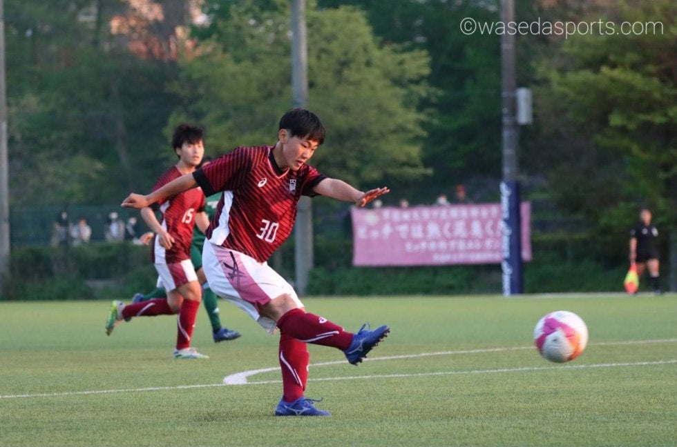 ホーム東伏見にフレッシュな風が吹いた――。関東女子リーグ戦(関東リーグ)前期第1節。昨年度、全日本大学女子選手権(インカレ)の初戦で負けた因縁の相手との対戦となった。ア式蹴球部女子(ア女)は序盤から積極的に仕掛け、8分に先制。45+2分に2点目を追加して折り返すも、後半は同点まで詰め寄られてしまう。焦りが見られる苦しい展開になったが、試合終了間際にMF築地育(スポ1=静岡・常葉大橘)が値千金の3点目を決め、開幕戦を白星で飾った。