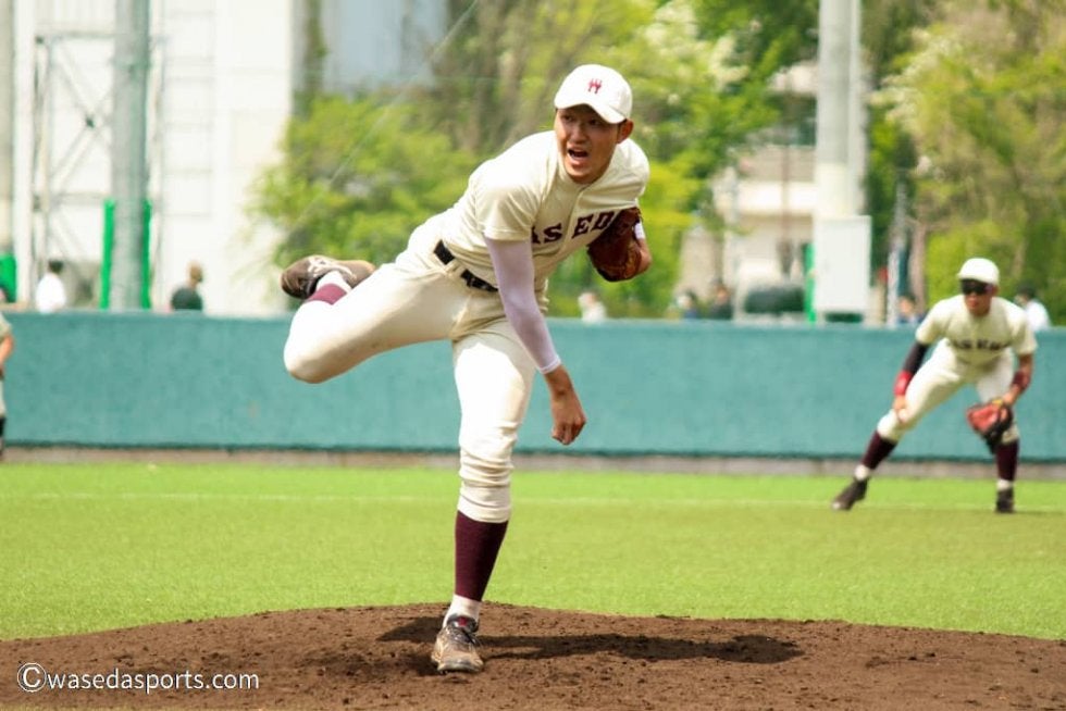 しかし、初回以降は得点圏に走者を置きながらも決めあぐねる苦しい時間が続く。均衡が破れたのは5回。この回先頭の渡部が振り抜いた打球は左翼スタンドへ。「とにかく塁に出よう、試合を作ろうという思いが本塁打につながった」(渡部)。この一打で、早大は待望の勝ち越し点を獲得した。援護する打線に対し、先発・清水は好投を見せる。2回を三者凡退に切って取ると、その後は走者を背負いながらも要所での落ち着いた投球が光り、追加点を与えない。8回までスコアボードに0を並べた。