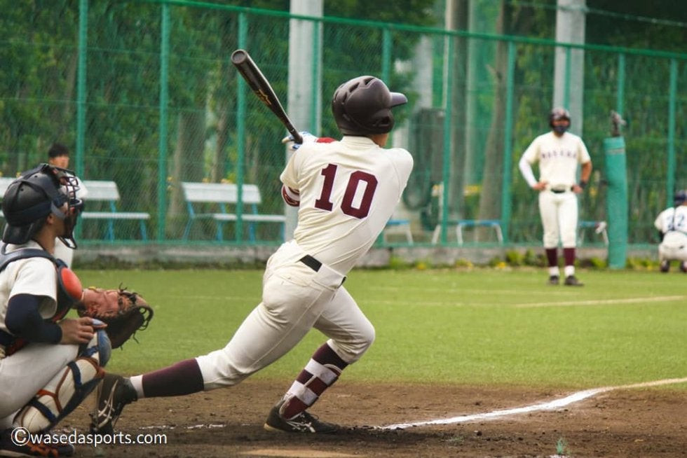 悔しい敗戦となった。初回から法大打線に2点の先制を許すも、直後の攻撃で川原崚(商3=東京・早大学院)の2点適時打で同点に追いつく。さらに、5回には渡部椋雅主将(商4=神奈川・桐光学園)が本塁打を放ち、勝ち越しに成功した。しかし9回表、1死一、二塁のピンチから連打を浴びて2失点。その後の早大打線は得点できず、無念の逆転負けとなった。