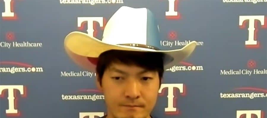 試合後会見に臨んだレンジャーズ・有原航平(画像はスクリーンショット)